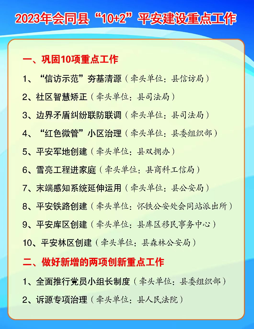 (一)、“三源”共治办公室 (牵头单位:县平安办,设县政务中心一楼)